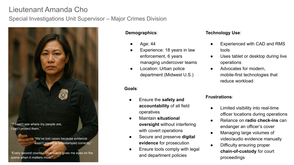 Overwatch fills this critical gap, enabling safer operations and stronger cases through mobile-native, encrypted recording and tracking.
